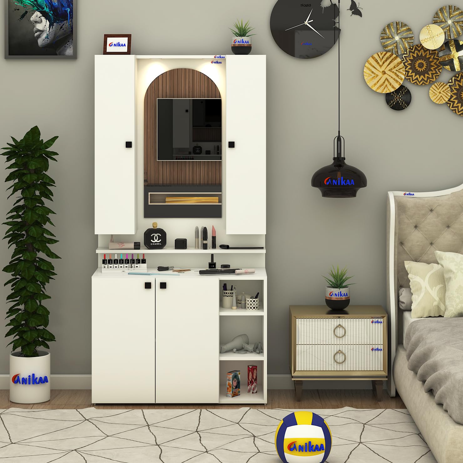 - Wall Mounted Makeup Vanity & Organizer – Stylish and space-saving dressing table with mirror and storage, designed for modern bedrooms and compact spaces.