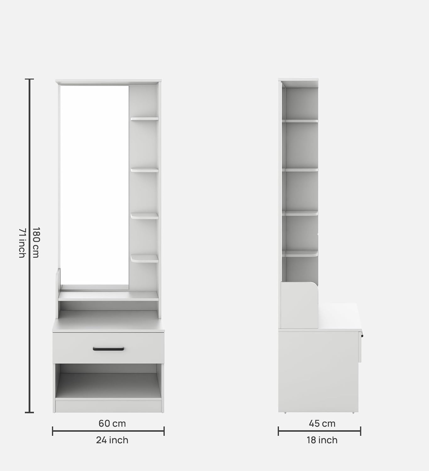 - LARGE MIRROR – Full-length mirror (120 cm H x 40 cm W) for a seamless dressing experience